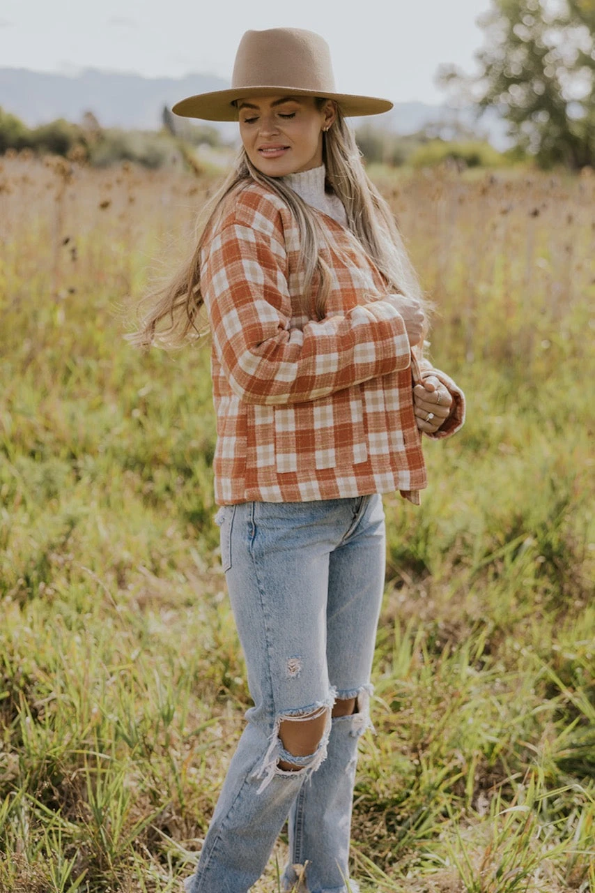 This plaid jacket has our hearts. She has us blushing in all shades of red + all the green in our wallets is going toward this staple piece. This jacket features working wood buttons, pockets, and looks adorable paired over your favorite sweaters + graphic tees. The Blushing Red Plaid Jacket is the perfect piece for this fall and winter season!