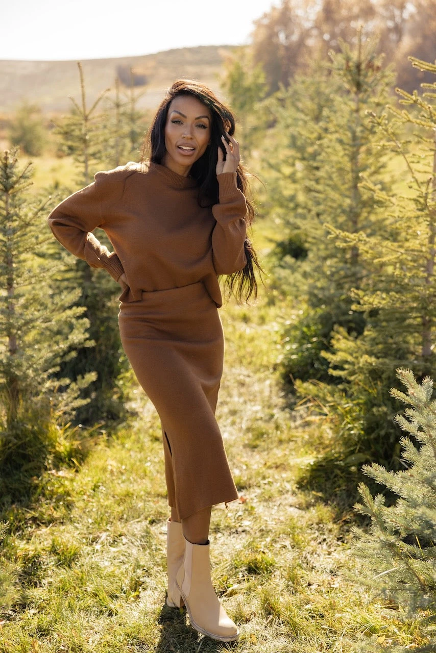 The Brightly Shining Midi Skirt features cozy knit material, side slits, and a comfy waistband. We love it paired with the matching sweater or another neutral sweater to add some contrast.Â