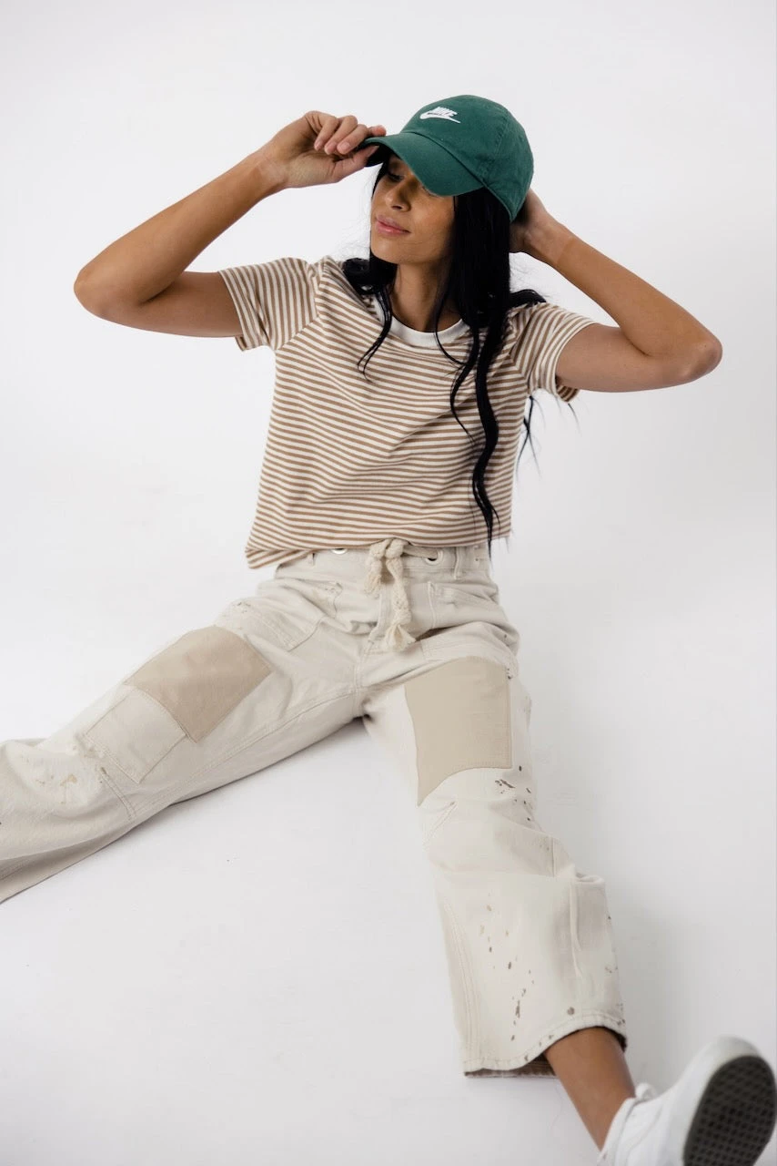 tan // paired with the free people moxie low slung jeans in ivory, the old skool vans in white, + big time denim shorts