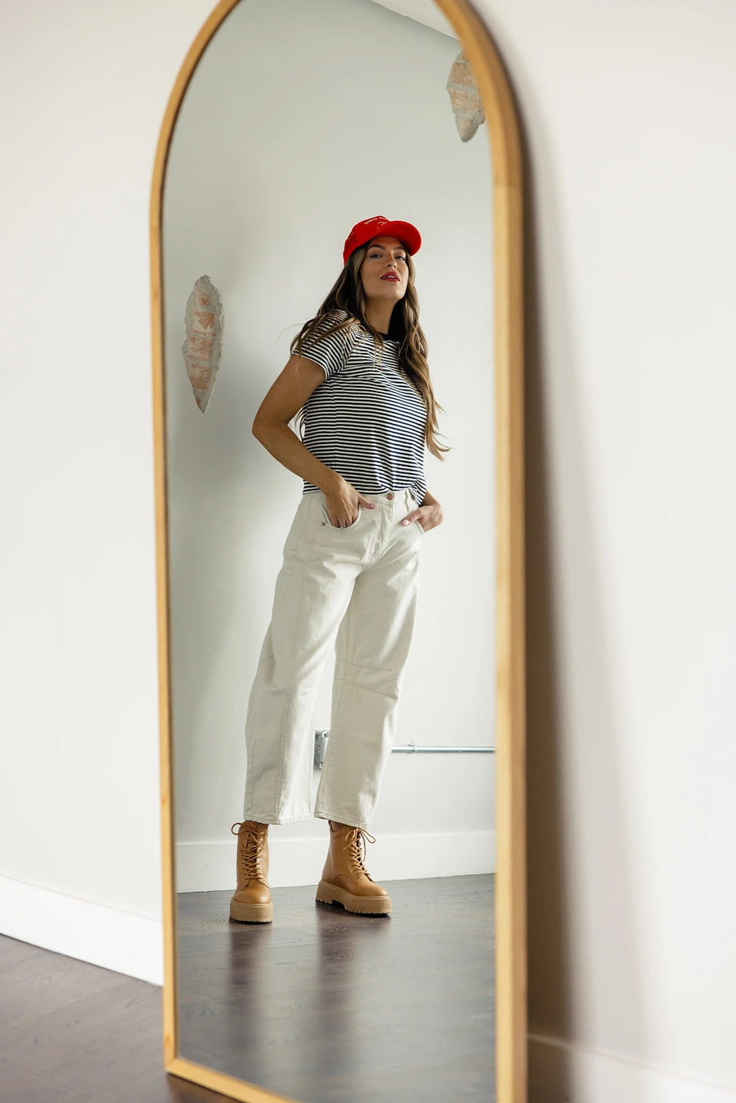 navy // paired with the saddleback ranch foam trucker hat + the free people lucky you mid rise barrel jeans