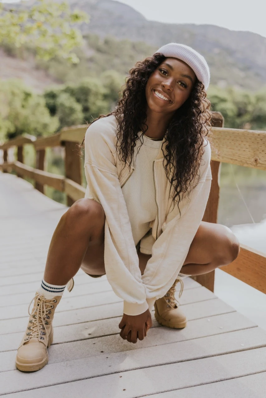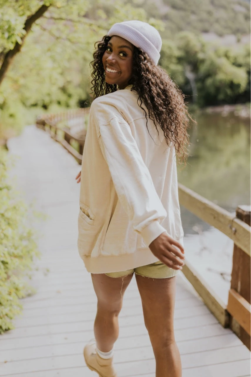 If you’re looking for the perfect jacket for those fall days ahead, this bomber jacket is it. Add this vintage-inspired jacket to your collection because she’s chic + effortless. The Bobby Jacket was designed with a slouchy, relaxed fit and worn detailing around the seams giving it a truly lived-in look.Â