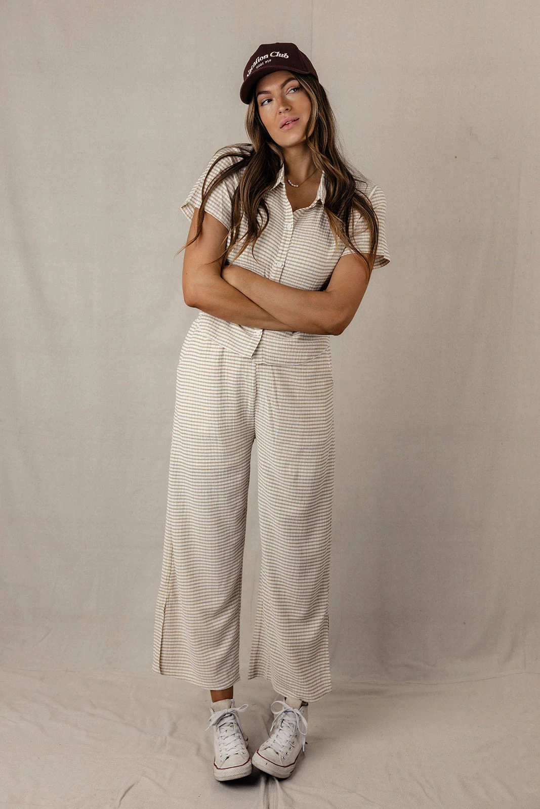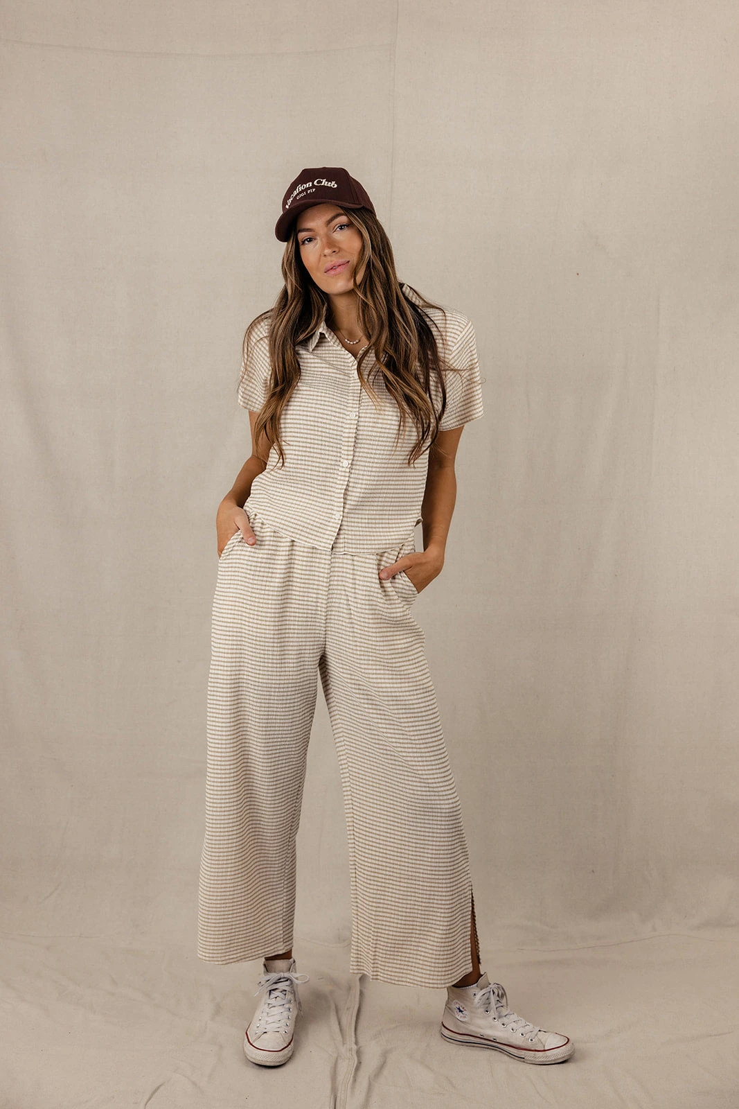 The Kyla Striped Pants feature a wide leg, elastic waistband, and pockets. Pair with anything already in your closet or grab the Kyla Top for the perfect set. Hold on to comfort this season but still look put together with these cute pants!