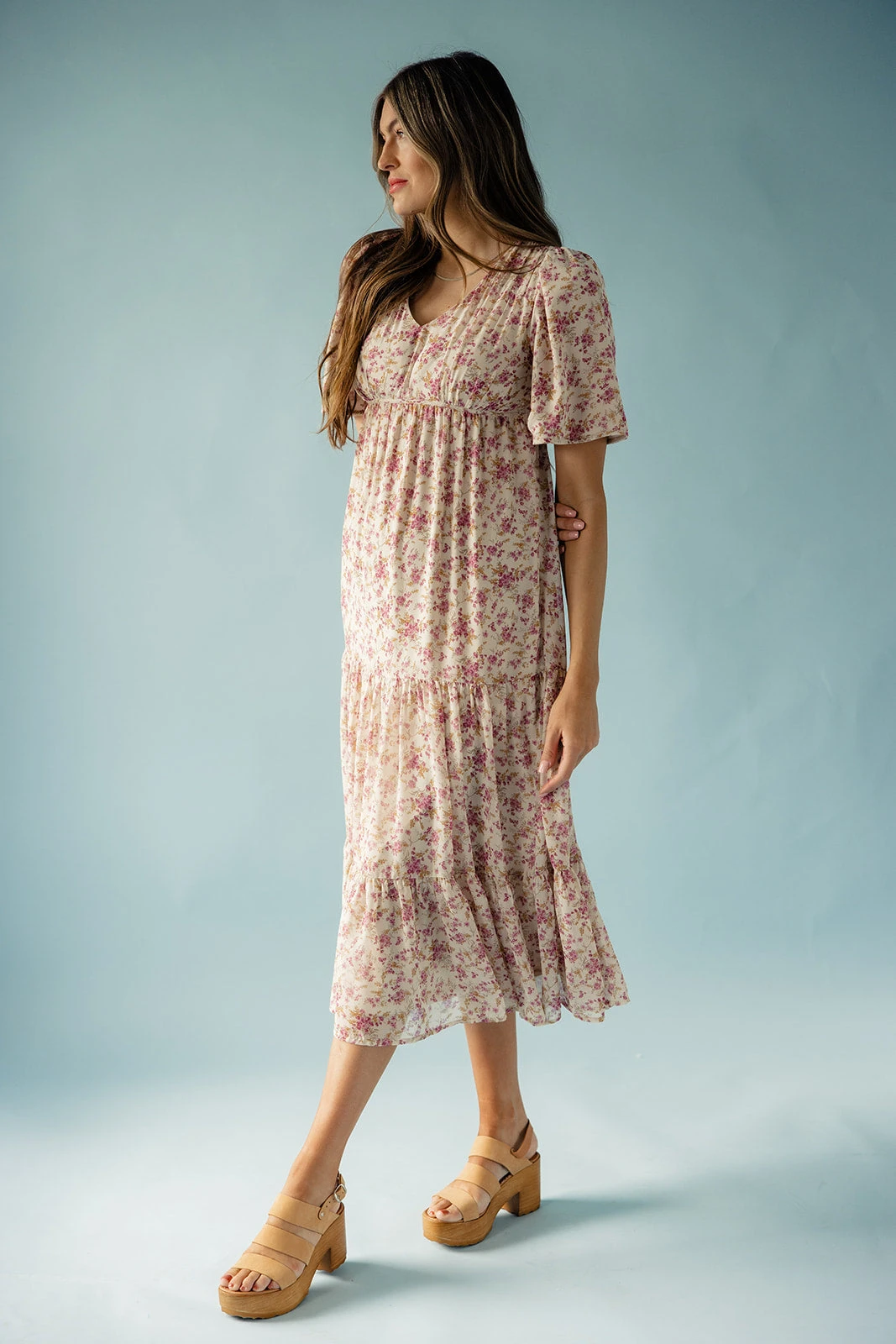 Introducing the Marmee, a delightful blend of timeless charm and modern grace. Adorned with an empire waist, flutter sleeves, and a twirl-worthy tiered silhouette, she is a whimsical journey into elegance. Pair with some heels and embrace the simple joys of life.