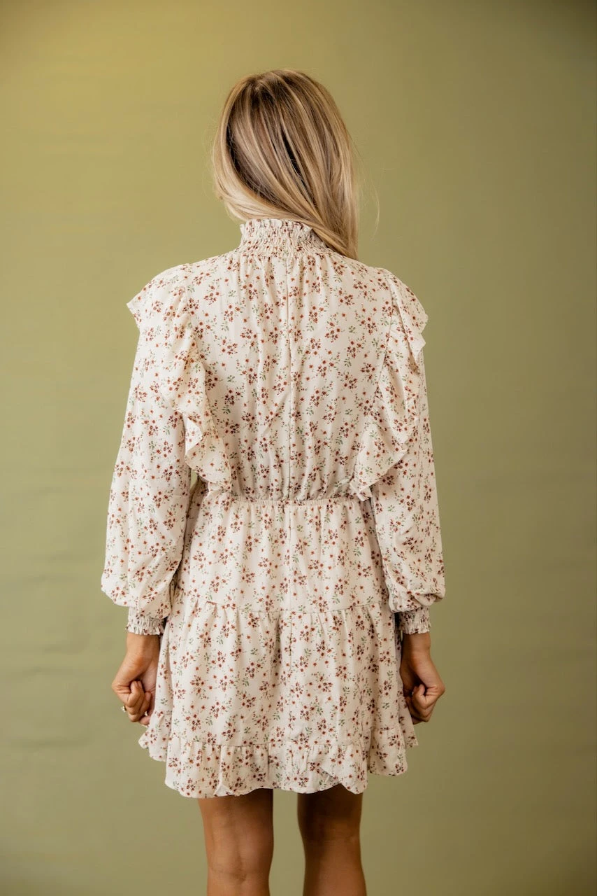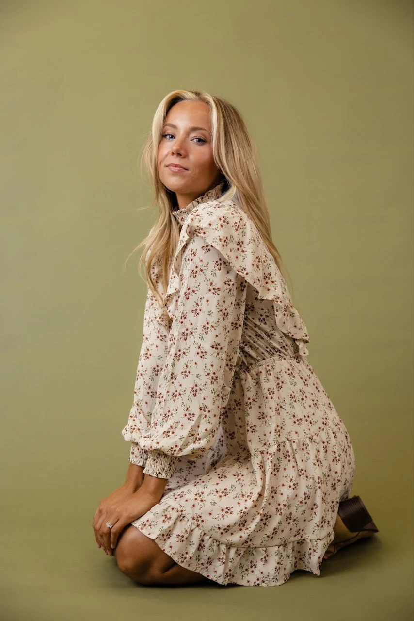 The Rosabelle Dress features ruffle details, poet sleeves, and a high neckline. It’s dainty and chic and looks good with tights and your favorite boots or throw on your cowboy boots and a blazer for a more trendy style.