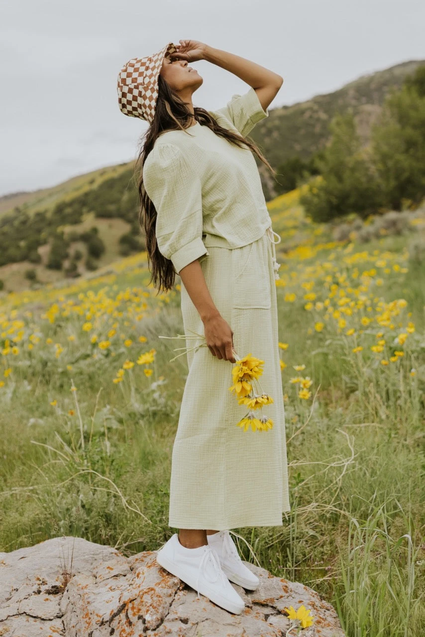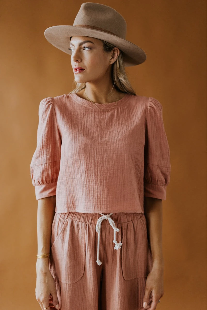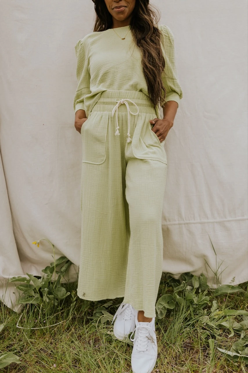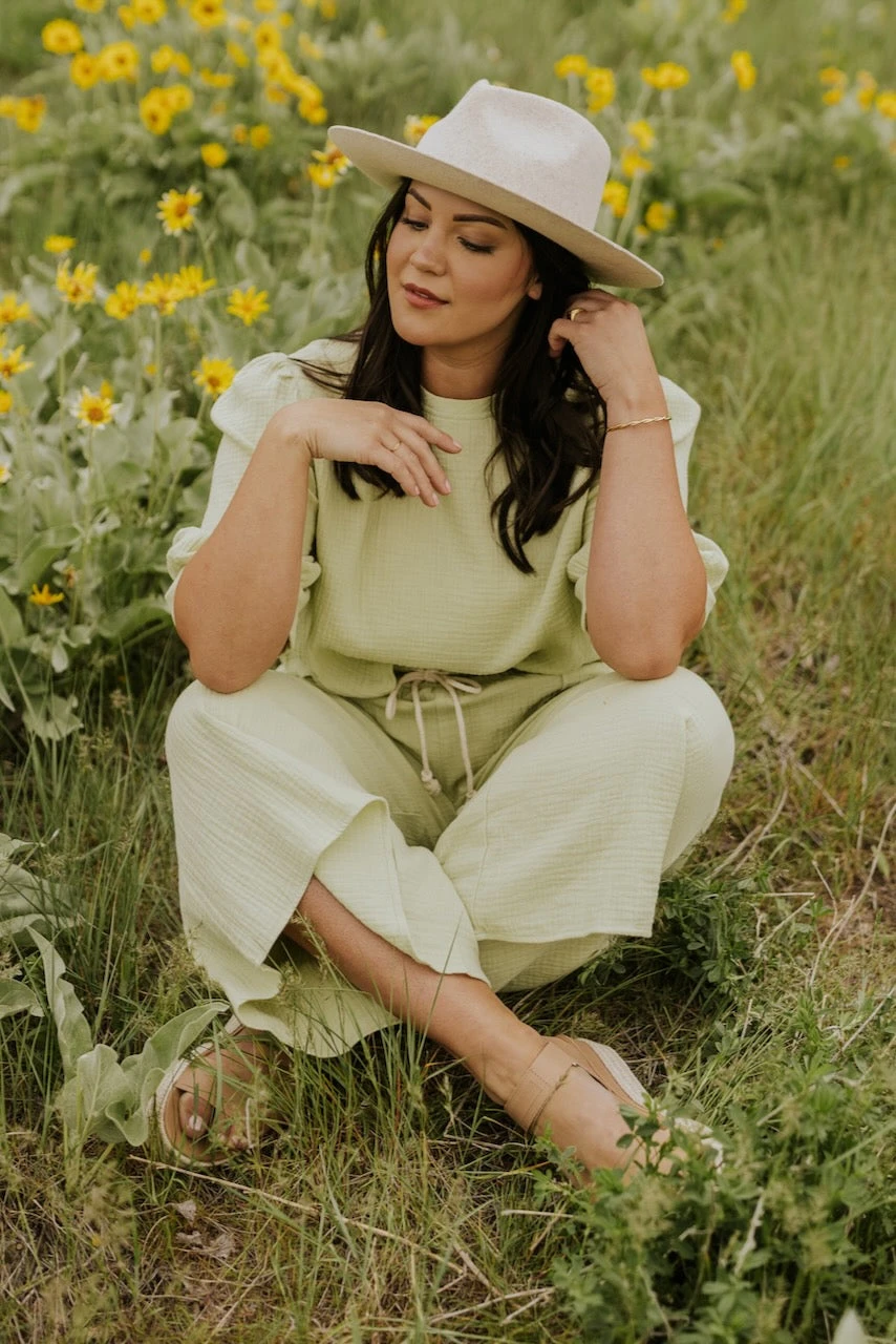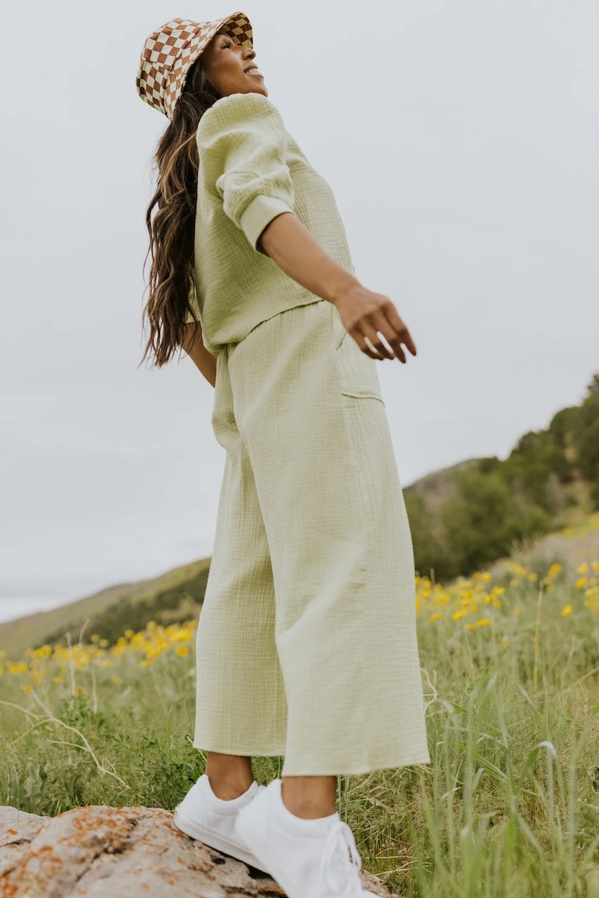 The SALT Nadaline Textured Linen Set is where comfy meets elegance and femme. Make a statement in these sets at brunch with the girls or at the office. You’ll be fashionable and comfortable with the exaggerated wide-leg, round neckline, and soft texture throughout. Completing the overall look is the slight puff in the sleeve, cropped length, and simplicity. Where will you be going in this chic set?