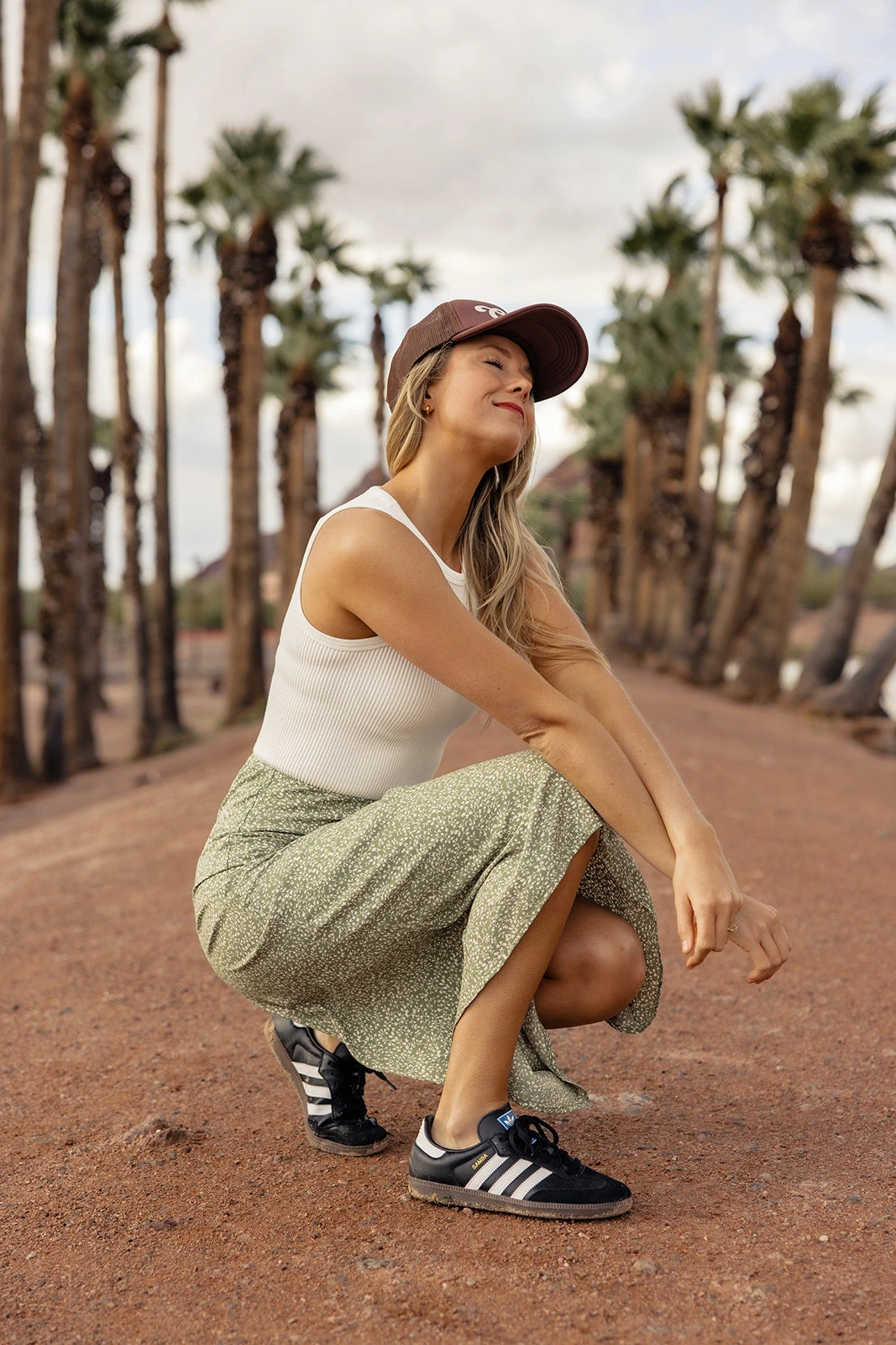 sienna // paired with the levi’s 501 high rise denim shorts in white + slow morning club canvas trucker hat