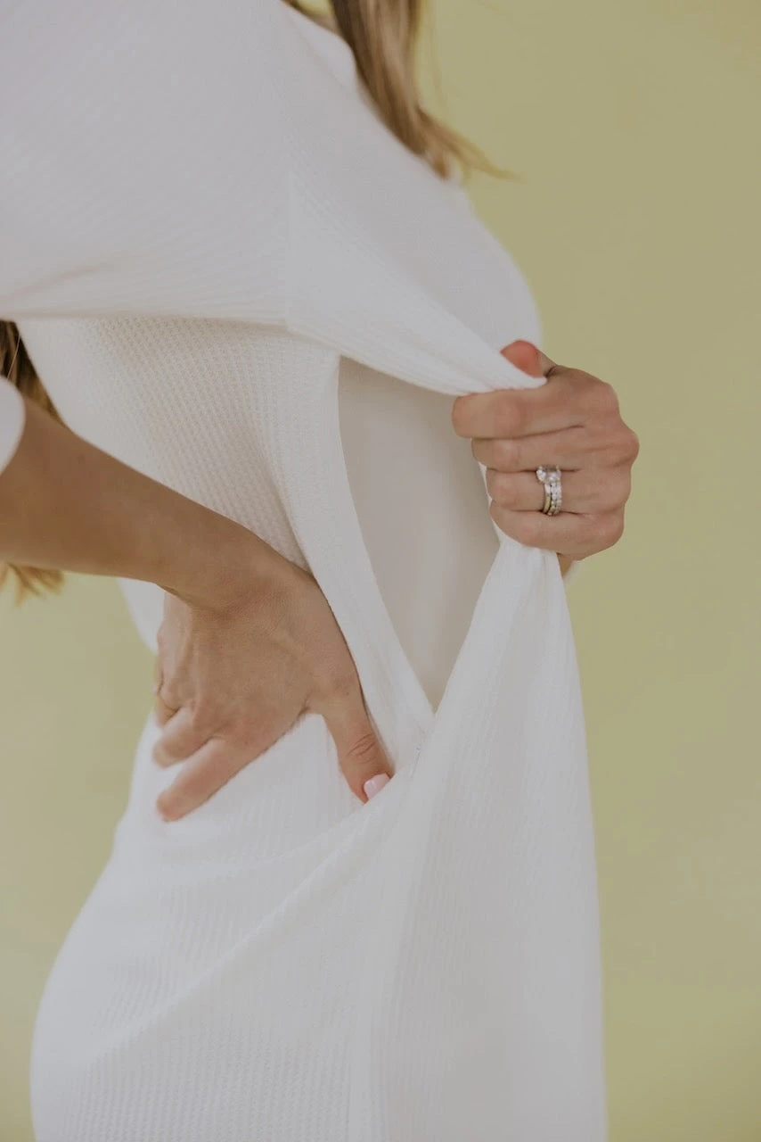 The Wynonna is a new instant staple. With textured waffle knit fabric, 3/4 sleeves, and nursing-friendly zippers, you really get the best of the best! We love this dress with sneakers and a ball cap for a casual yet trendy look. Coming in two neutral colors – you can’t go wrong with either one!